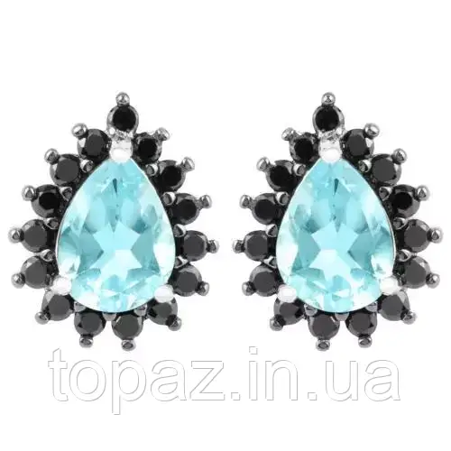 Сережки срібні 925 натуральний блакитний топаз (SKY TOPAZ), шпінель.